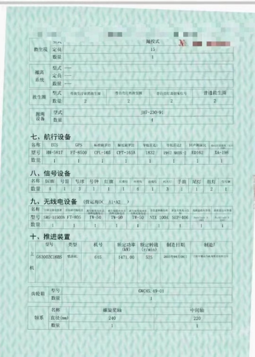 主机广柴2000马力,副机三台190马力与120马力,