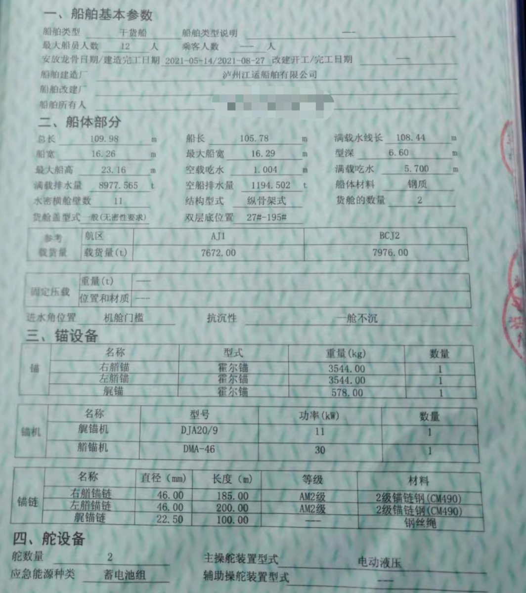 船尺寸(米) : 110*16.26*6.6