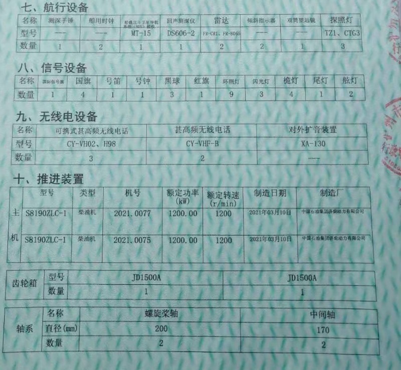 主机:济柴8190 1200kw 2台