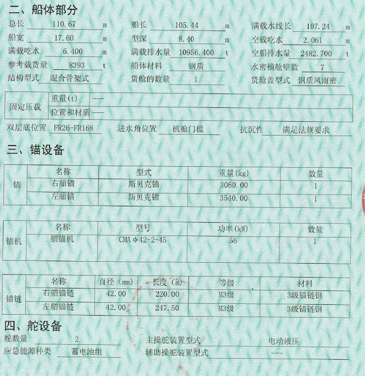 船尺寸(米) : 110.67*17.6*8.4