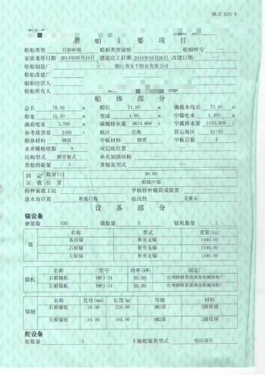 船尺寸(米) : 78*15.3*4.8