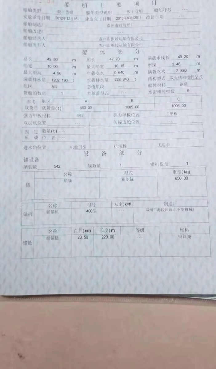 131号: 49.8✘10✘3.48 开价146万 2013.3月泰州船厂打造 龙筋11 下料55 前驾液压升降 楼高1.5 马力淄博408 145千瓦