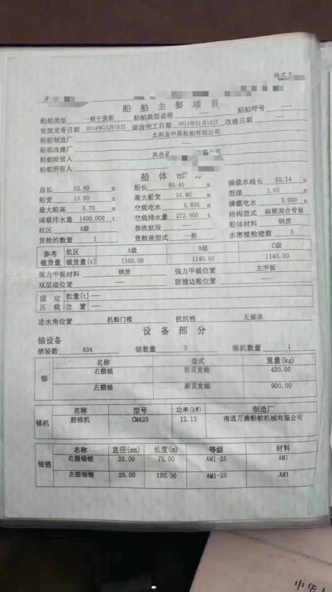 吉船52.8x10.6x3.6。2015年1月太和造,13道龙筋55下料,大圈10甲板10挂板8二层板8,水绞板10,潍柴540马力,总吨586,配员是2个,二类驾驶员。有掉头机双站全强,报价172.8万
