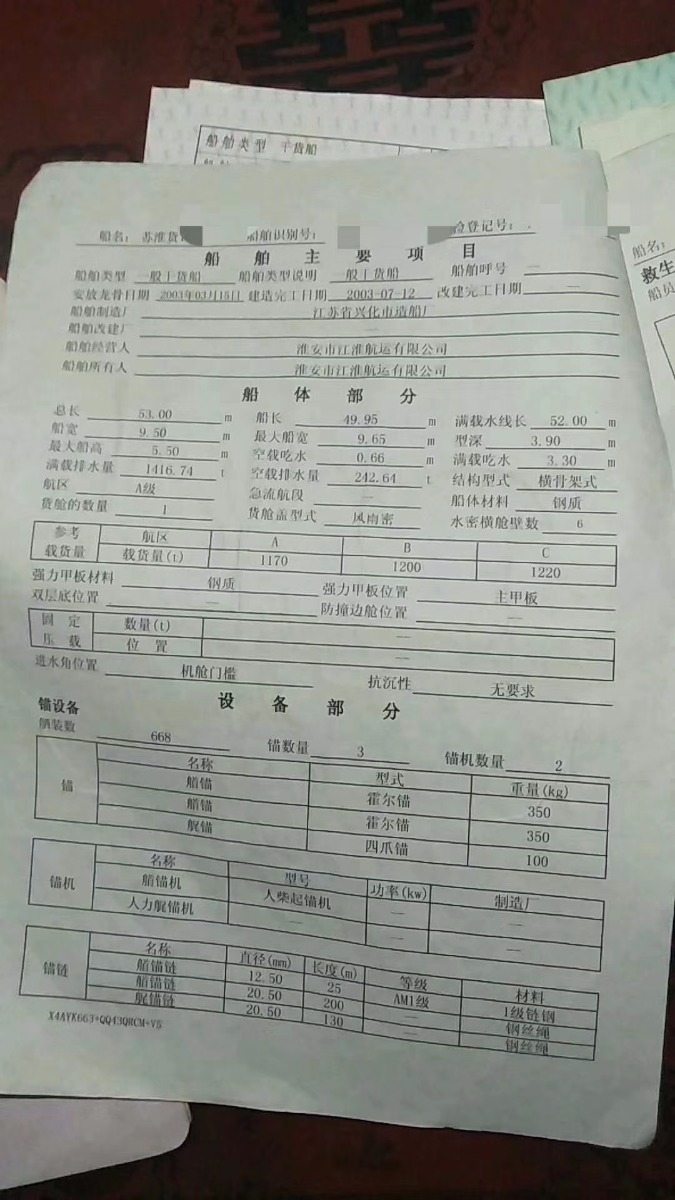 吉船53.8/9.66/3.9大仓26/7/4.75,11道龙筋50下料642总吨实装1400吨03年十一圩造,无锡6140/210马力二台,报价58.8万