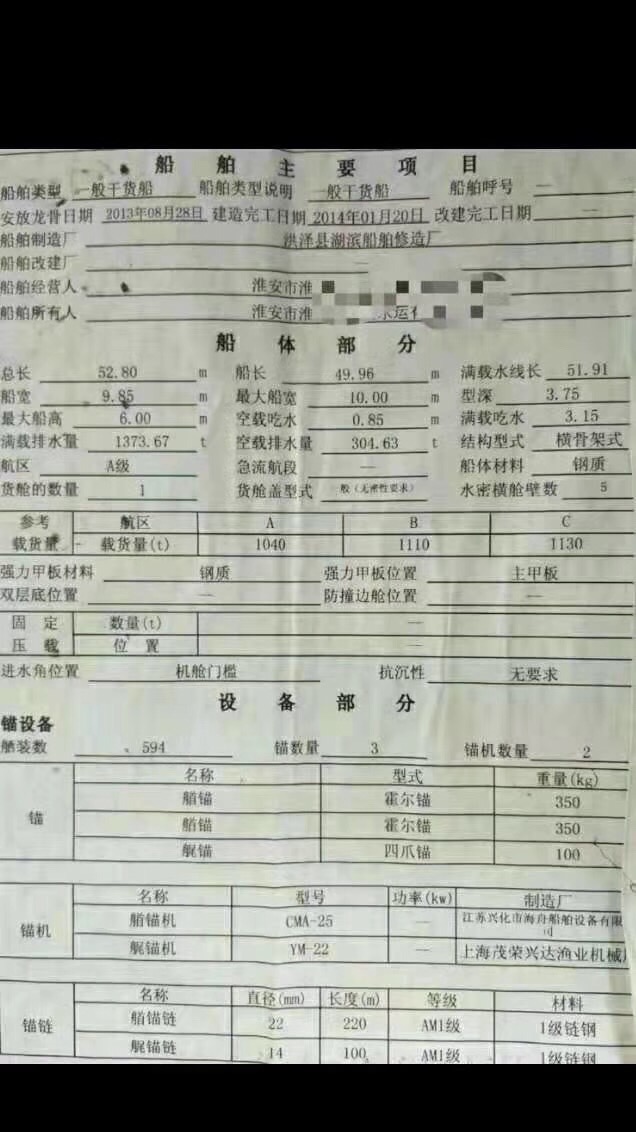 吉船52.8*9.85*3.75前驾驶液压楼,2014年洪泽造淮安户;用料13*50双站通仓全强,3道10个其余7个,板厚底挂8甲川10;设备前后锚机,自动封仓架;报价160万,京杭运河标准化尺寸船,任意转港及贷款