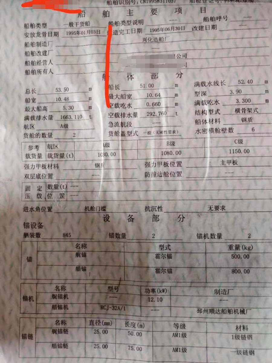 吉船:53.5+10.48+3.9兴化造,菏泽户,维坊250马力,双站,前后锚机,中间有满梁,13道龙筋,尖头前驾,报价82.6万