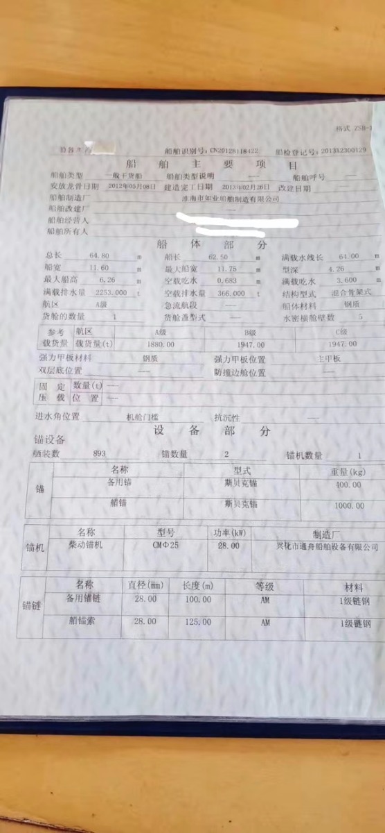 吉船出售64.8×11.6×4.26主机480×2潍柴2241吨