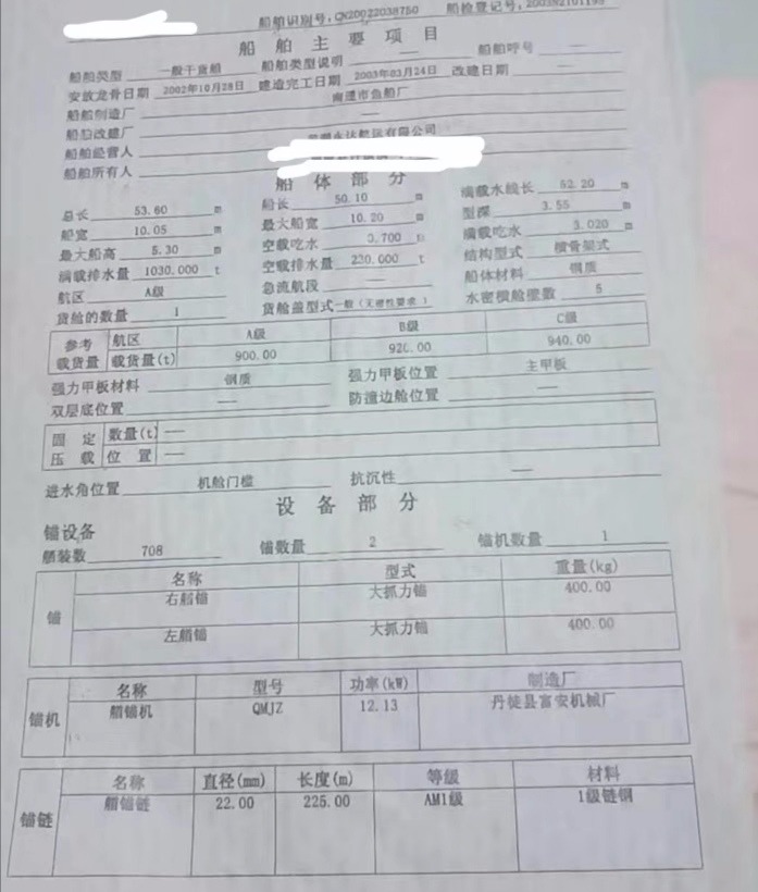 船尺寸(米) : 53.6*10.2*3.55