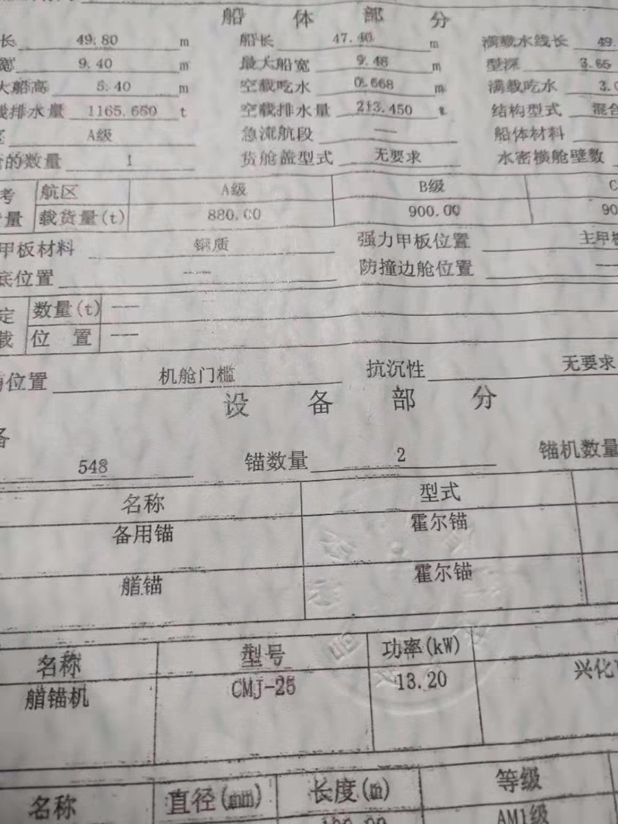 吉船 50×9.48×3.65 2010年出厂,淄博480马力,13道龙50下料,二层板10个,楼子1.65双二类,太和造,全船全强报价122万