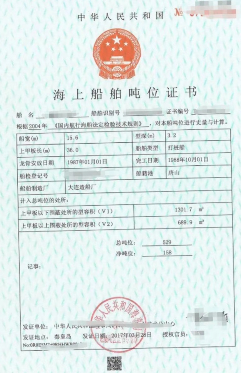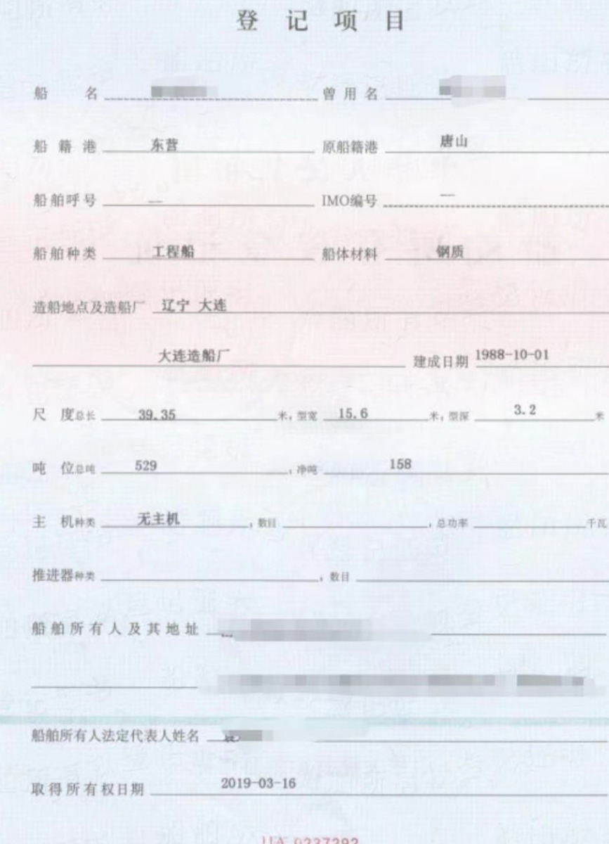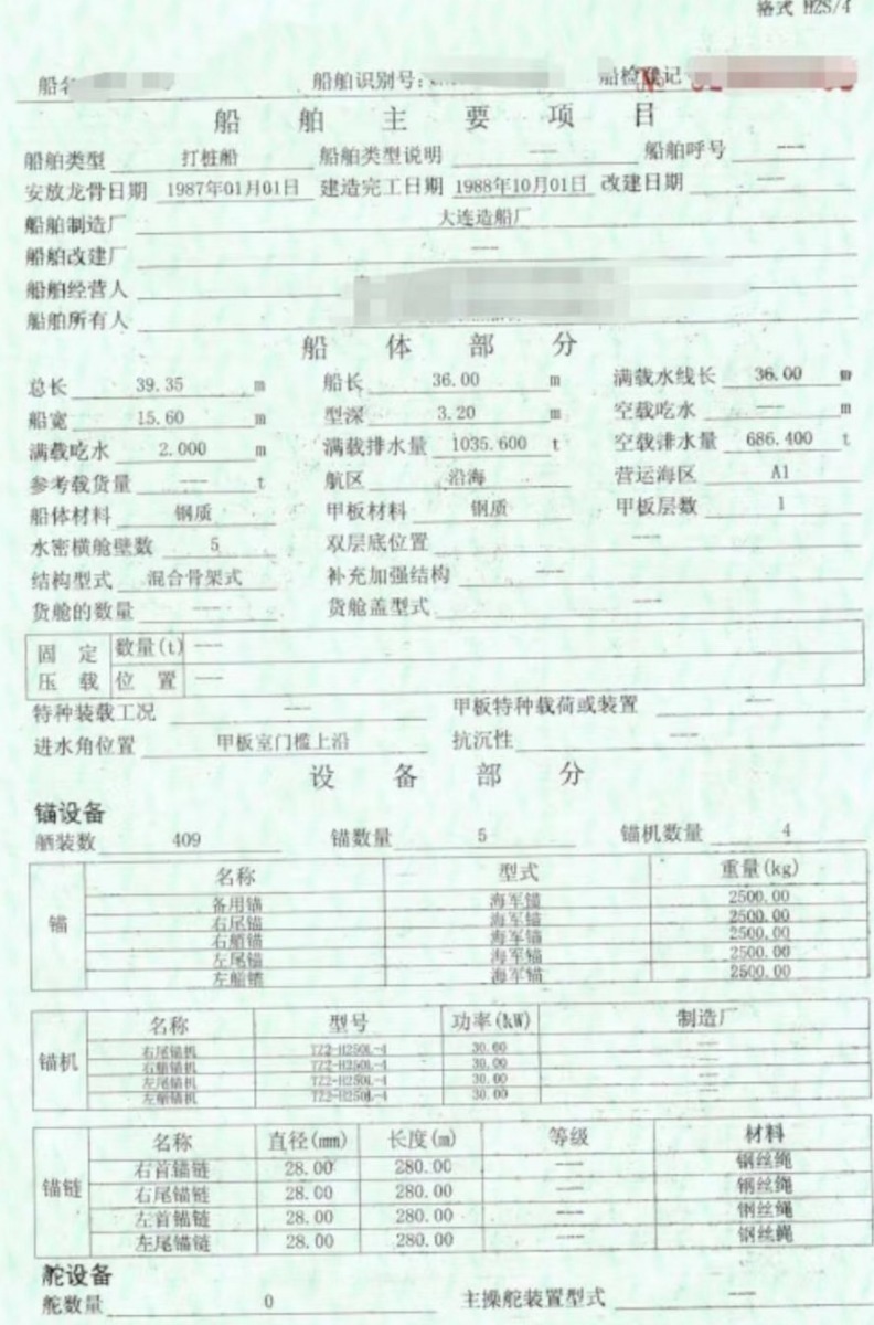 吉船长宽深:39.45米+15.6米+3.2米; 主机型号:NA;