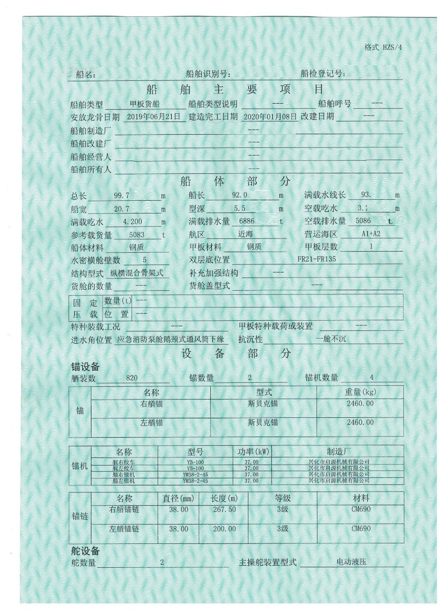 吉船长宽深:99.8米+20.8米+5.6米; ccs钢板20mm厚,钢板加料近200吨