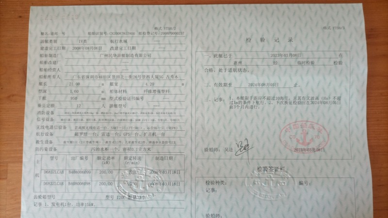船尺寸(米) : 21*4.6*1.6
