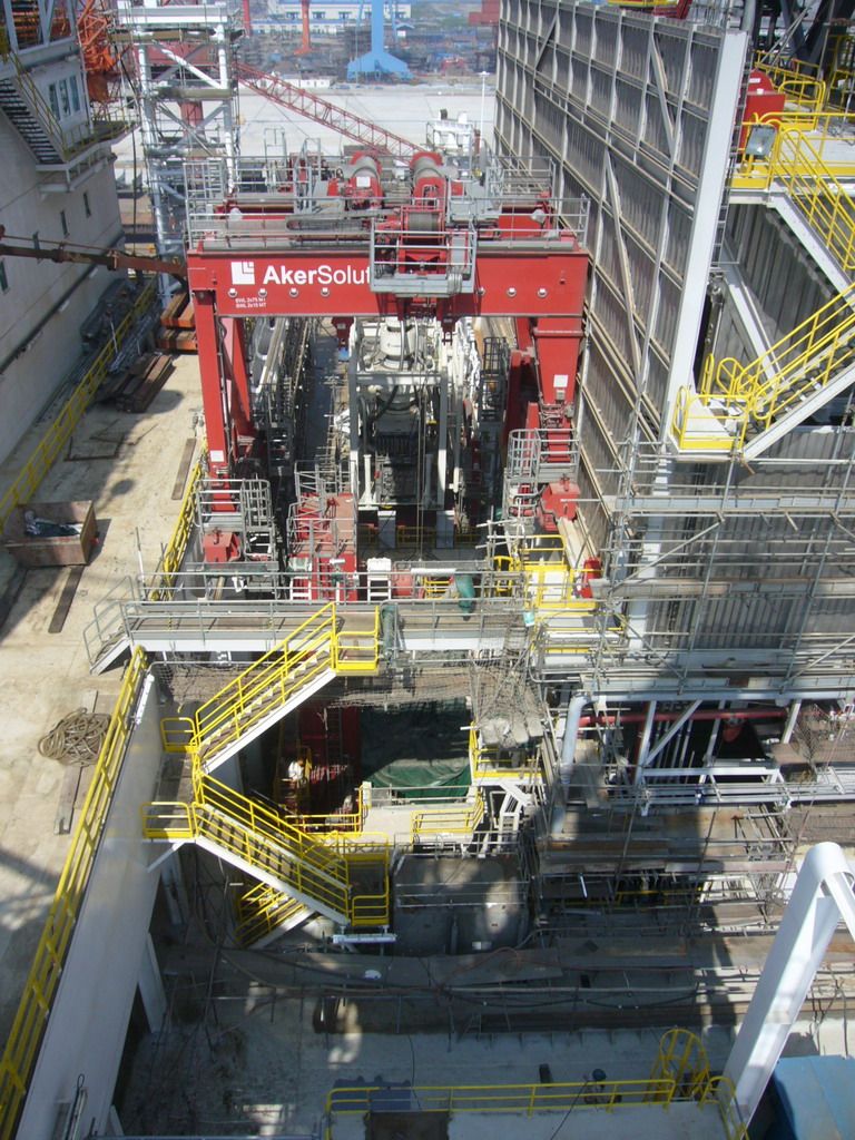 起吊大钩载为1000吨,同时配备了主动补偿系统和被动补偿系统。