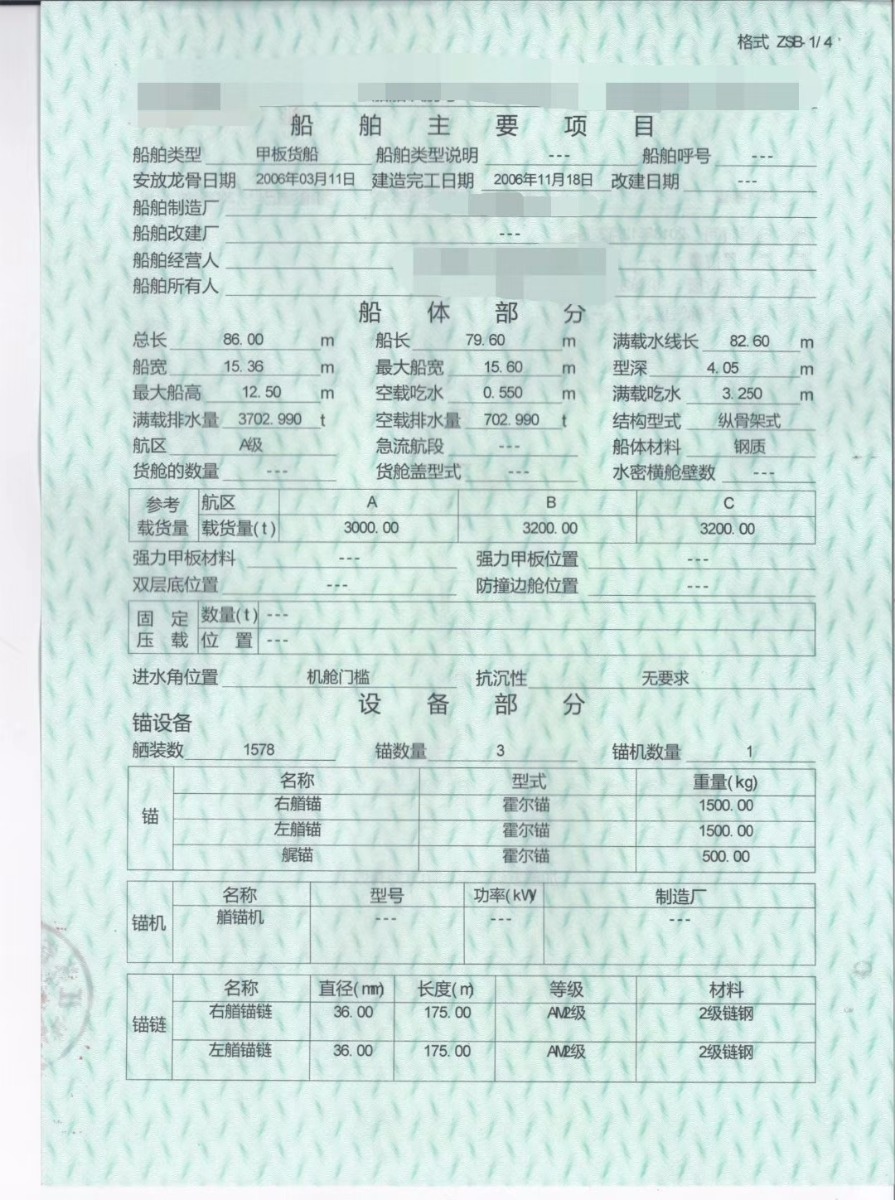 尺寸:总长86/船宽15.36/型深4.05/满载吃水3.25