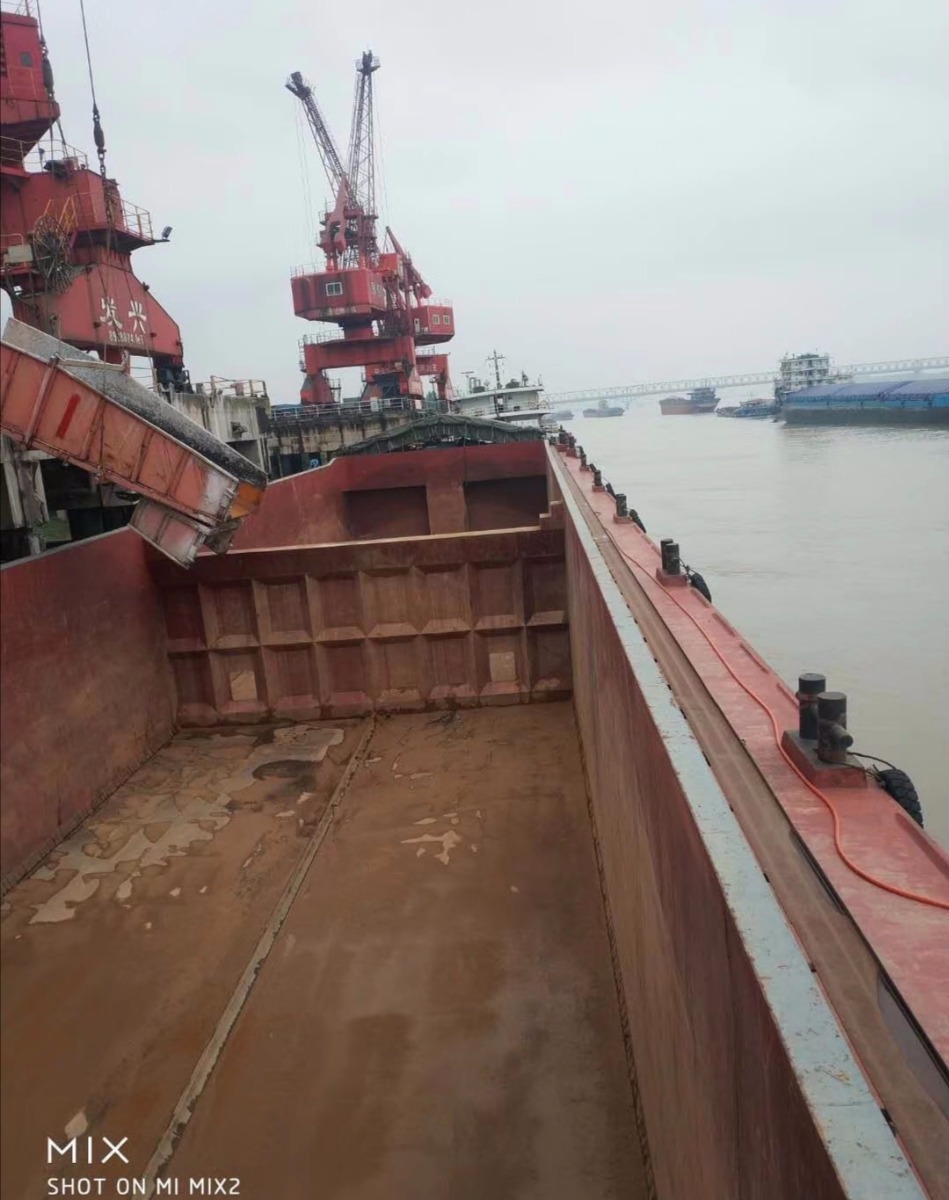 吉船出售:长83米,宽14米6,深5米7,计:4835吨,2014年6月江苏如东造,两台620维柴,9道90,挂板10,甲板、仓口、二层板全12,仓口56米3,有自动棚架,自己建造,质量可靠,江苏户,报价880元一吨!