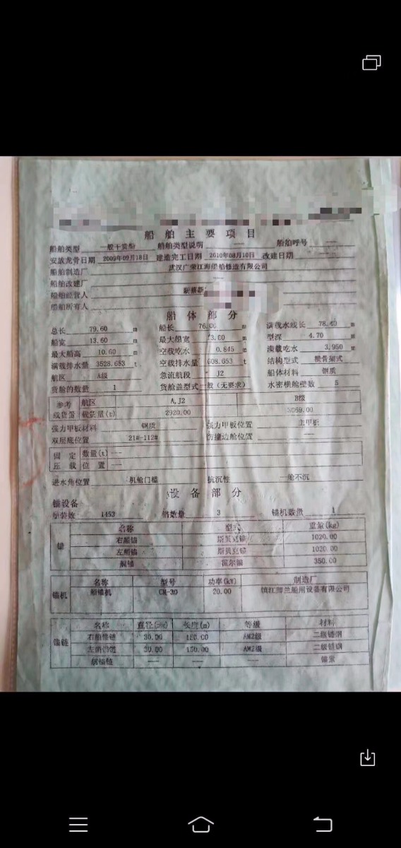 用料情况船东不清楚,买的别人的船,看船时测验证书齐全