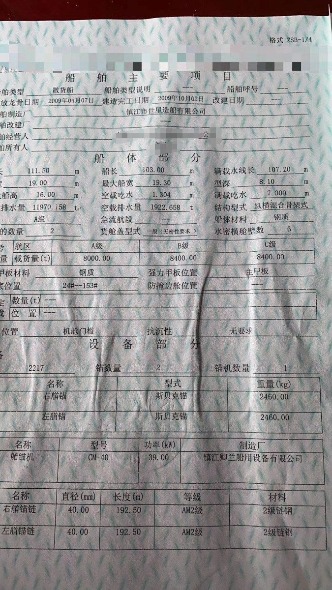 吉船长111.5宽19深8.1。 2010年十二圩造。