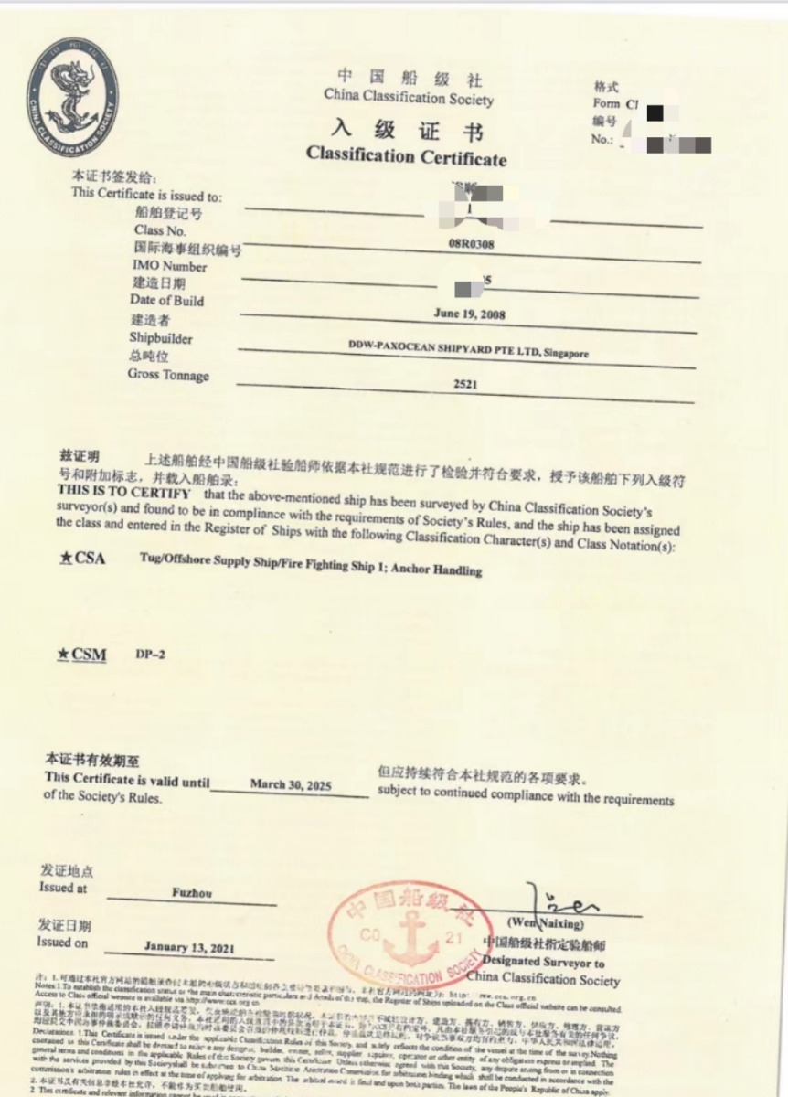 船级(CLASS):