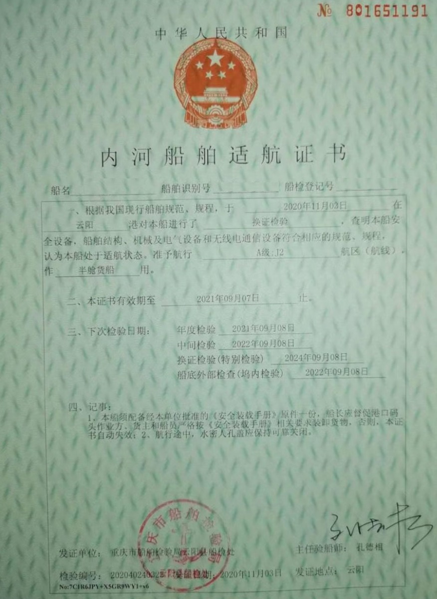 2003年85米3987吨货船; 涪陵造 ;