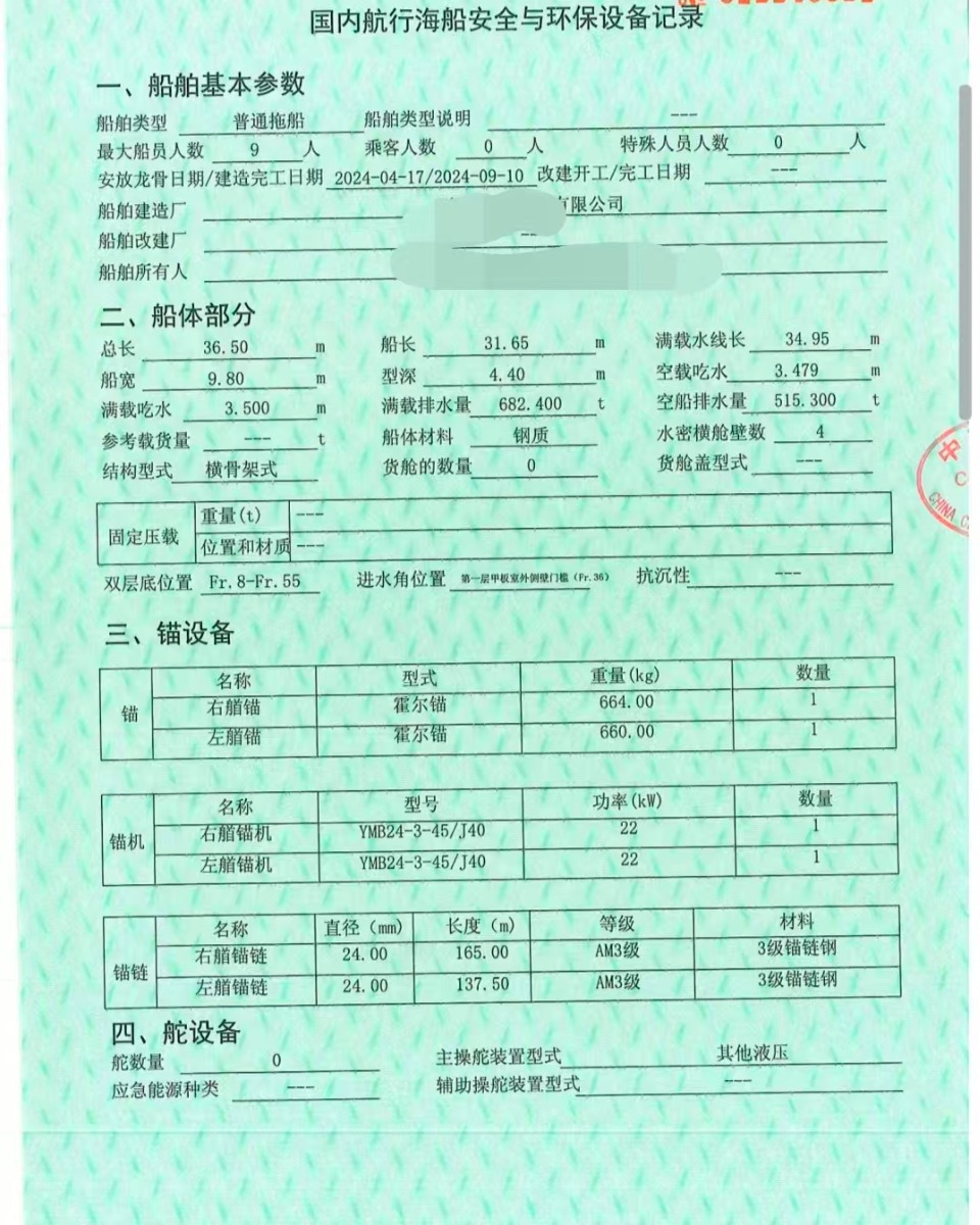 船尺寸(米) : 36.5*9.8*4.4