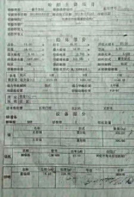 吉船53X10.5x3.6前驾驶液压楼,2011年12月江都造安徽户;用料13道龙筋5O下料,3道主龙,双占通仓;板厚外壳8,仓口甲板10;仓口34.5米,主机潍柴540;报价143.8万,【该船总宽不超过10.80米】【近日空船,需要速联】
