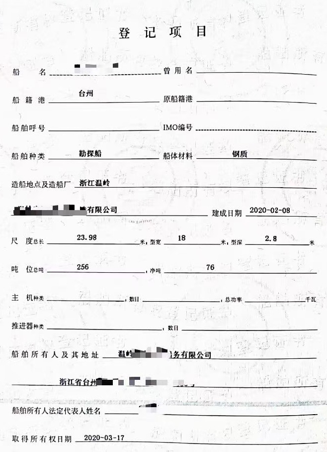 2020年2月,浙江温岭造,总吨256,挂户台州