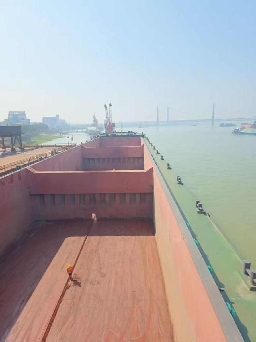 143.25x25.3x9.2=23340吨,15年12月南京造,马力6250-2(2000-2)潍柴,鹅头双满梁三楼,皖户,2024年年5月份上坡打油漆保养。报价660一吨。