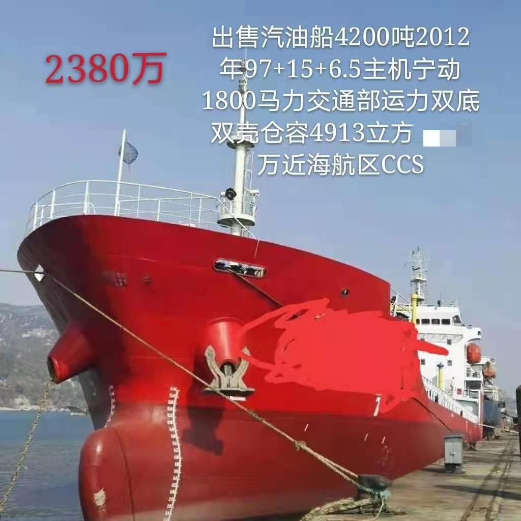 售 2012年97米4200吨油船 | 2380万元  ~ 5667 元/吨 | 出售;汽油船4200吨 2012年 97X15X6.5 主机宁动1800马力 交通部运力双底双壳仓容4913立方 万近海航区CCS 报价2380万。 | 详情 |
