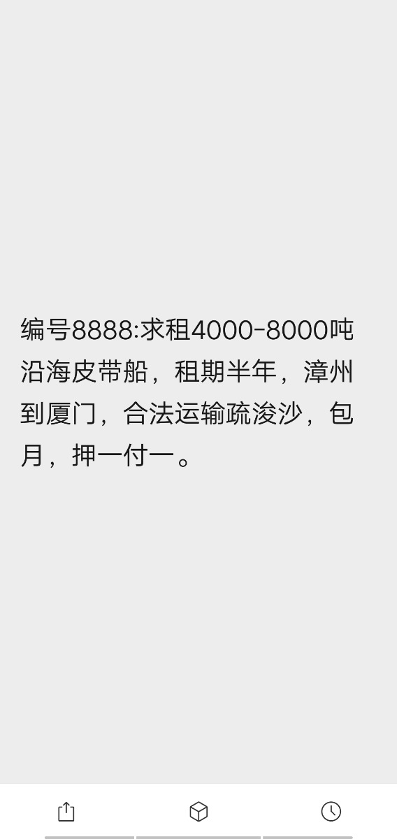 求租沿海5000吨左右皮带船 面议 15160118456 郑 详情